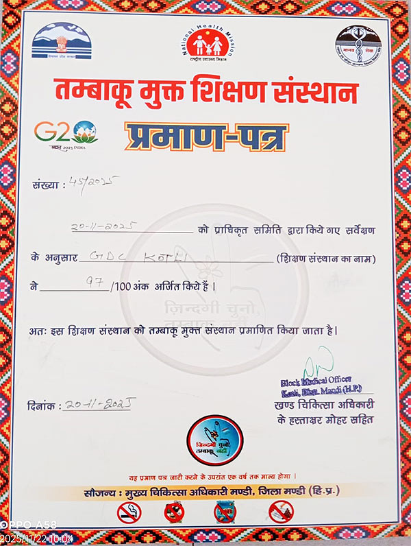 The anti-drugs cell of the college has been constituted to ensure a drug- free campus by imposing a total ban on the possession or consumption or use of drugs and alcohol by students of the college, within or outside the campus/hostels.